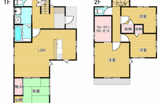 | 建物面積 | 1階57.94㎡ 2階46.35㎡ 延べ面積104.29㎡(31.54坪) |